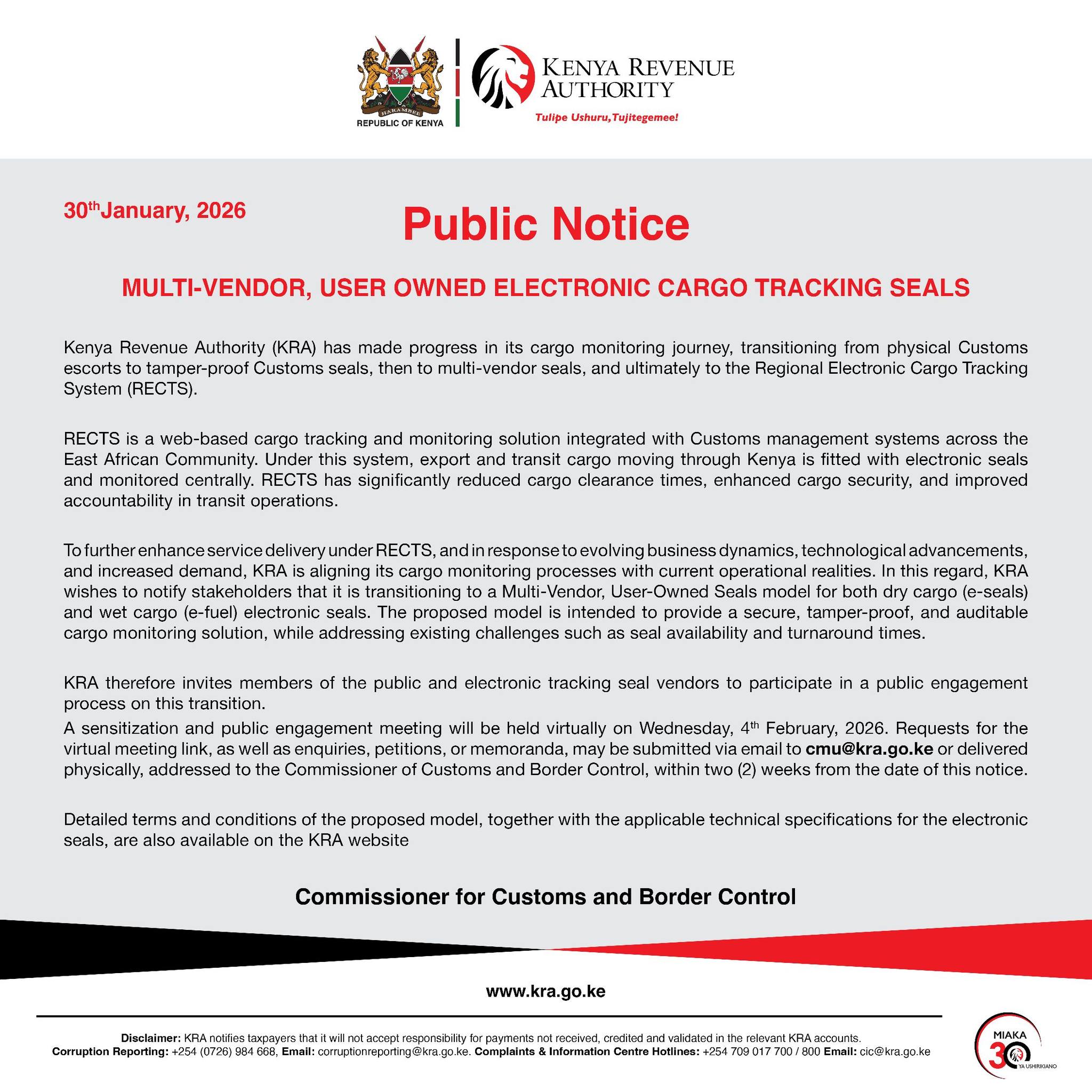 Tired of seal shortages jamming up Mombasa Port and hiking your costs? Kenya Revenue Authority (KRA) is flipping the script, letting East African traders buy and use their own electronic cargo tracking seals while opening the market to multiple vendors.